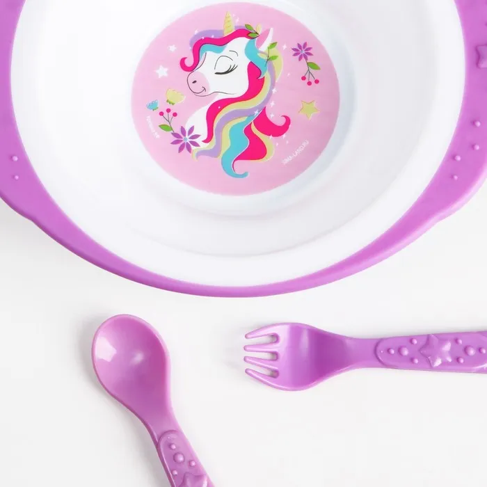 Тарелка M&B «Единорожек», на присоске 250мл, в наборе вилка, ложка — Характеристики