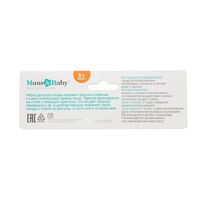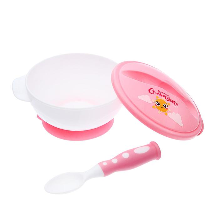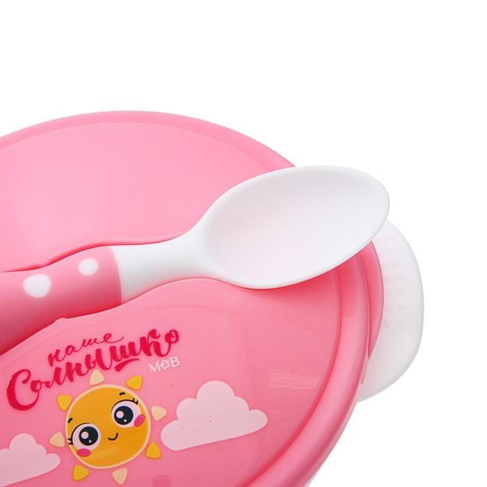 Тарелка M&B «Наше солнышко» на присоске, в наборе крышка, ложка, розовый — Характеристики