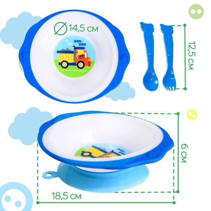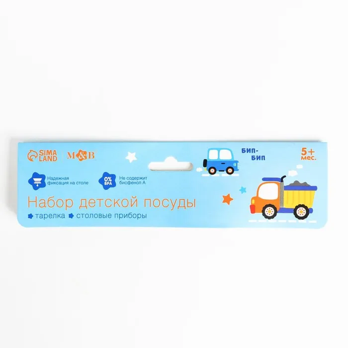 Тарелка M&B «Транспорт Бип-Бип», тарелка на присоске 250мл, в наборе вилка, ложка — Характеристики