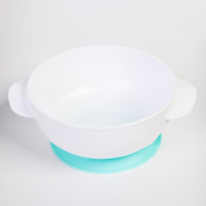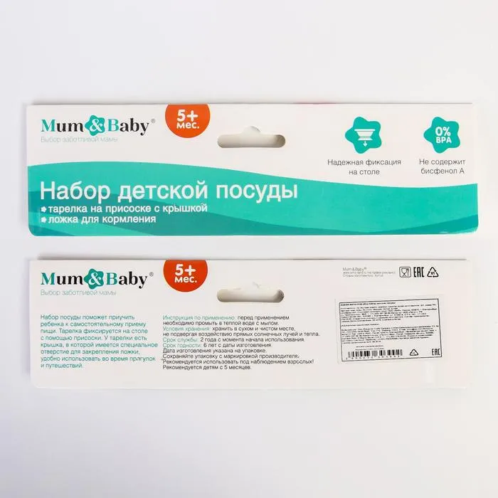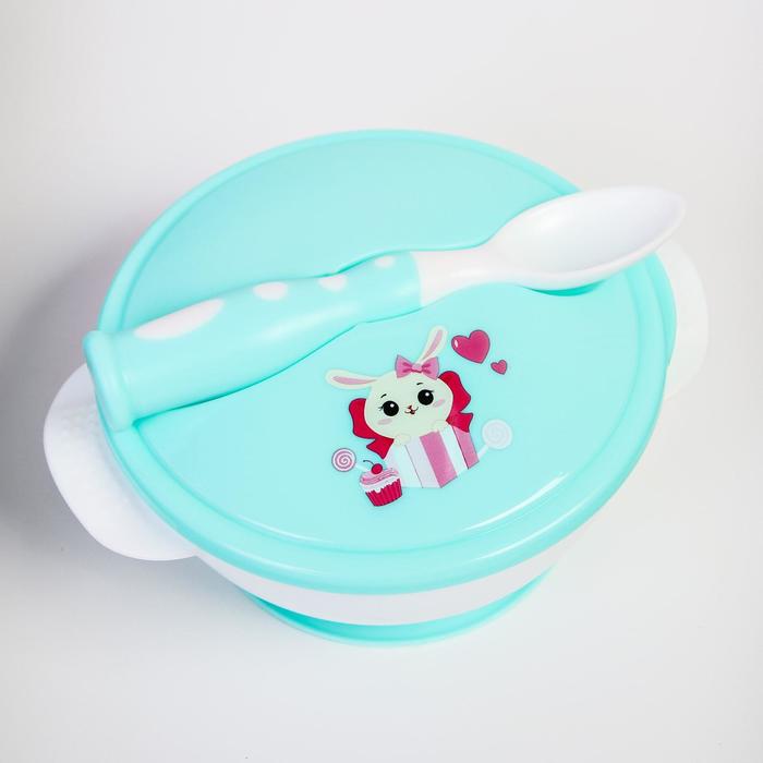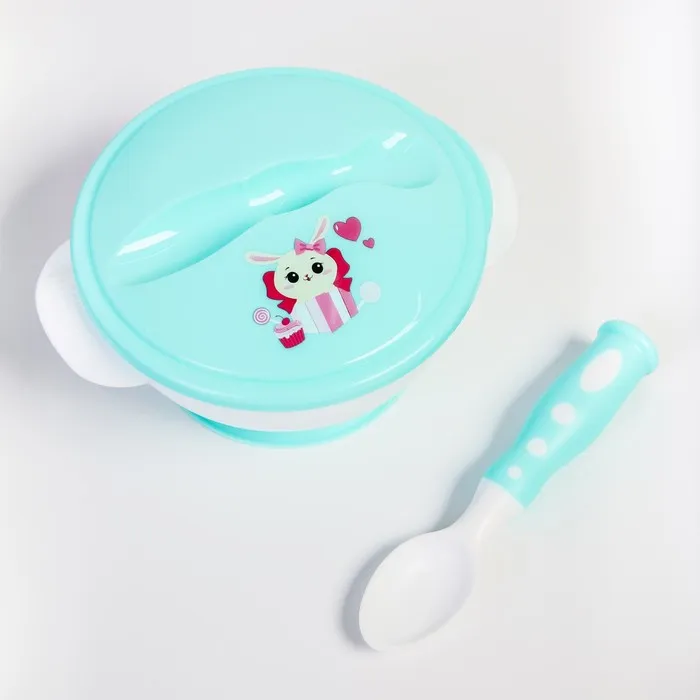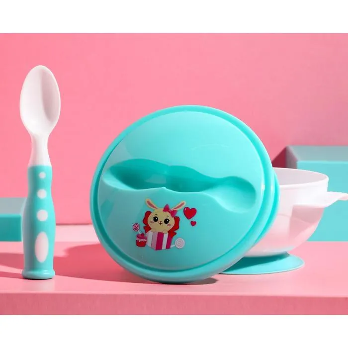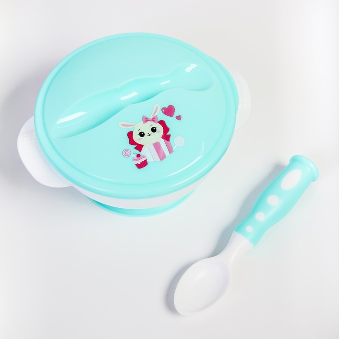 Тарелка M&B «Зайчик», на присоске, в наборе крышка, ложка, бирюзовая — Характеристики