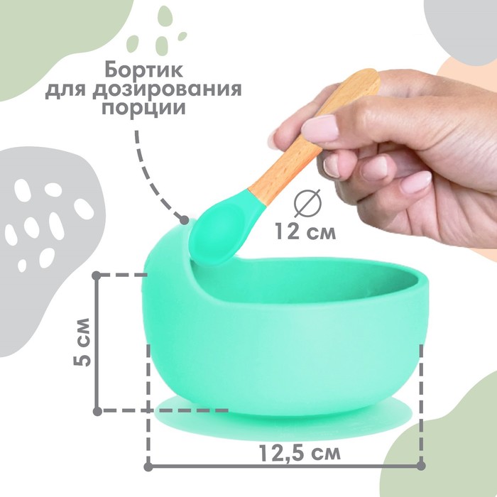 Силиконовая тарелка на присоске для прикорма изготовлена из 100% натурального пищевого силикона, не содержит бисфенол А (BPA free). Мягкий материал посуды не травмирует зубки и дёсны малыша. Подходит детям от 5 мес+. Надёжная присоска позволяет хорошо зафиксировать тарелку на любой гладкой поверхности, и ребёнку будет сложно её перевернуть. Набор детской посуды безопасен для малышей. Силиконовая тарелка на присоске не имеет запаха, легко моется, не впитывает запахи и не окрашивается. Приятная на ощупь. Специальная умная форма силиконовой детской тарелки помогает зачерпнуть пищу, обучая самостоятельно кушать. Посуду из силикона можно мыть в посудомоечной машине и разогревать в микроволновой печи.