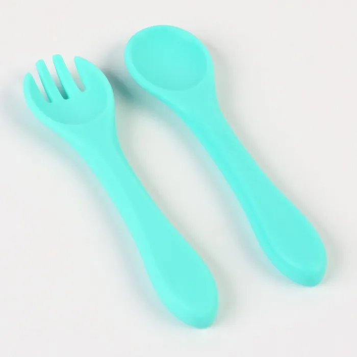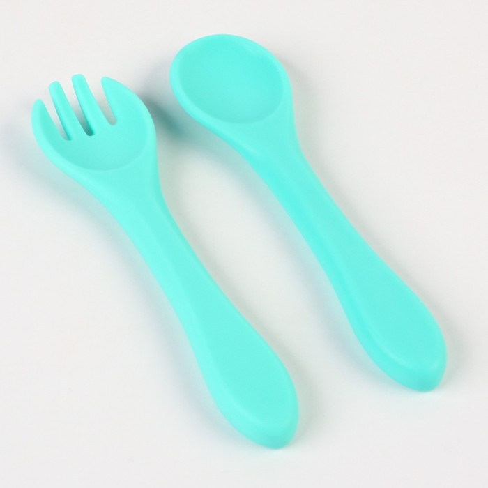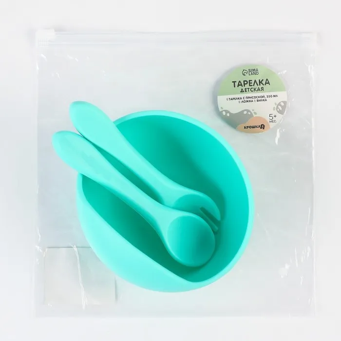 Тарелка на присоске и столовые приборы Крошка Я, из силикона, бирюзовый — Характеристики
