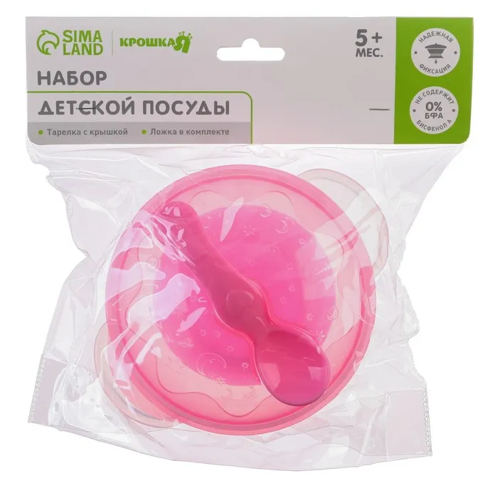 Тарелка на присоске Крошка Я 330 мл, в наборе крышка, ложка, от 5 мес., МИКС — Характеристики