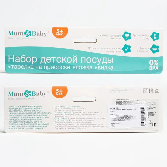 Комплект подходит для малышей, которые учатся кушать самостоятельно. Пластиковая посуда не бьётся и имеет небольшой вес. Её яркий дизайн непременно понравится крохе.