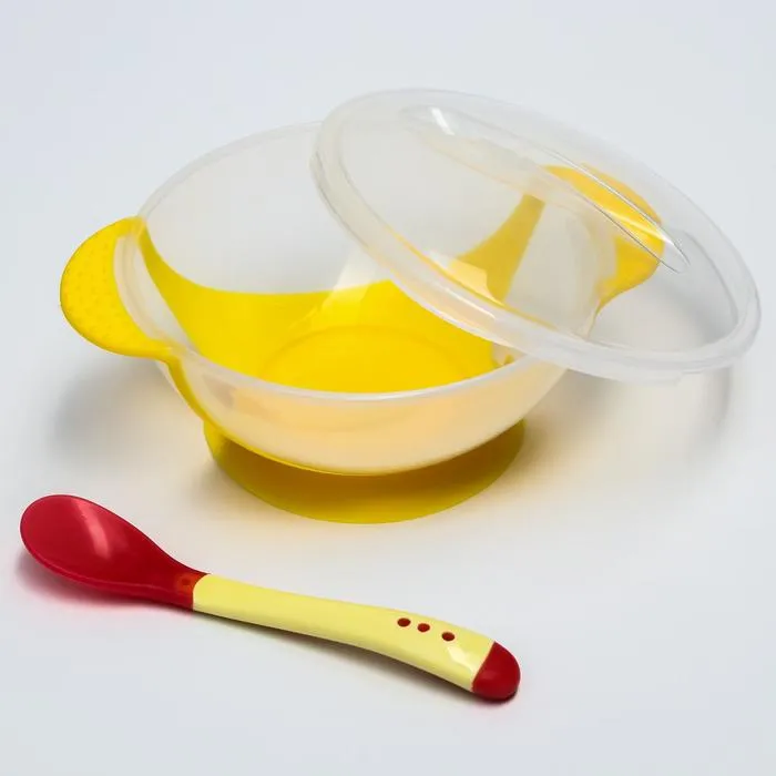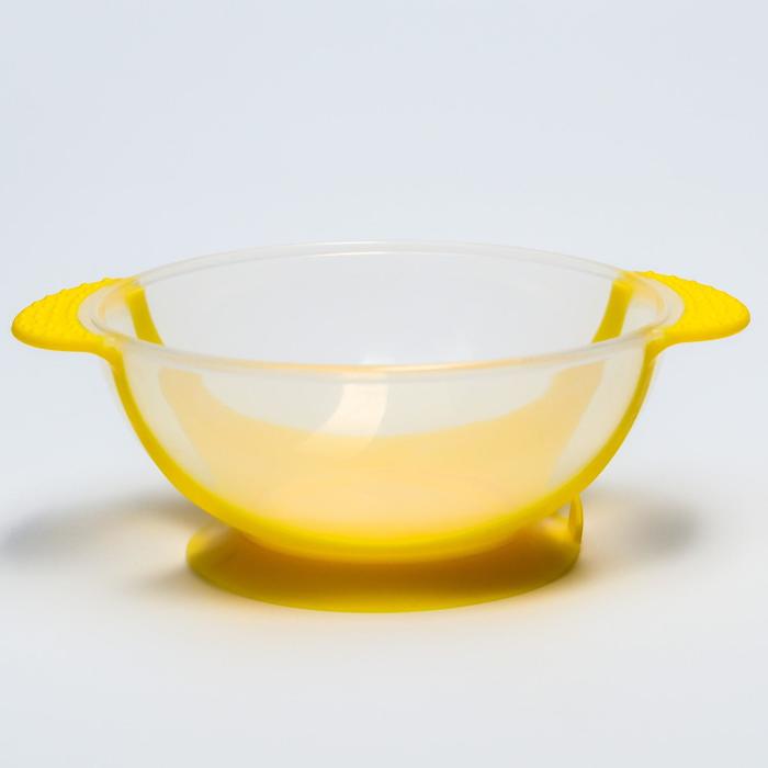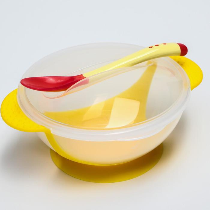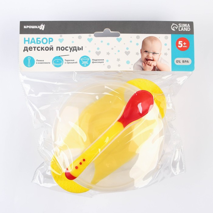 Тарелка на присоске Крошка Я 350мл, в наборе крышка, термоложка, цвет жёлтый — Характеристики
