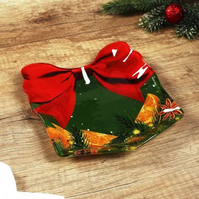 Новогодняя стеклянная тарелка — идеальный выбор для сервировки стола.