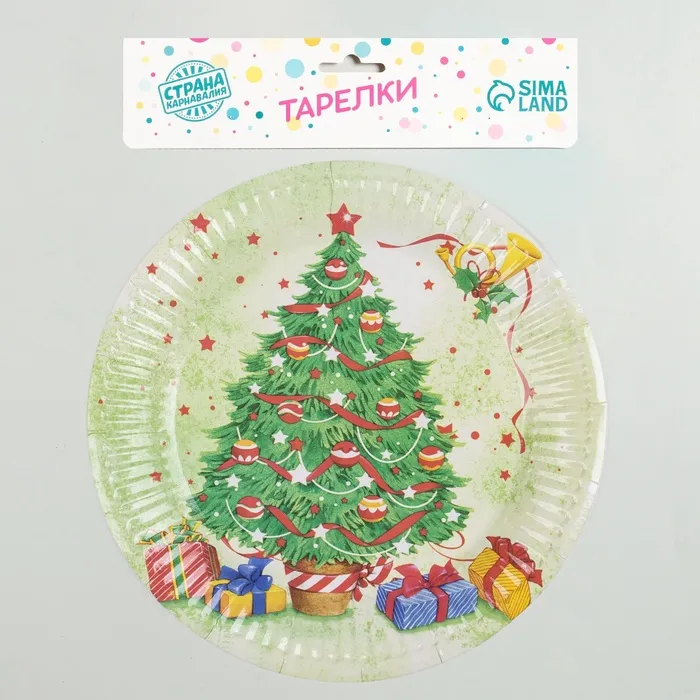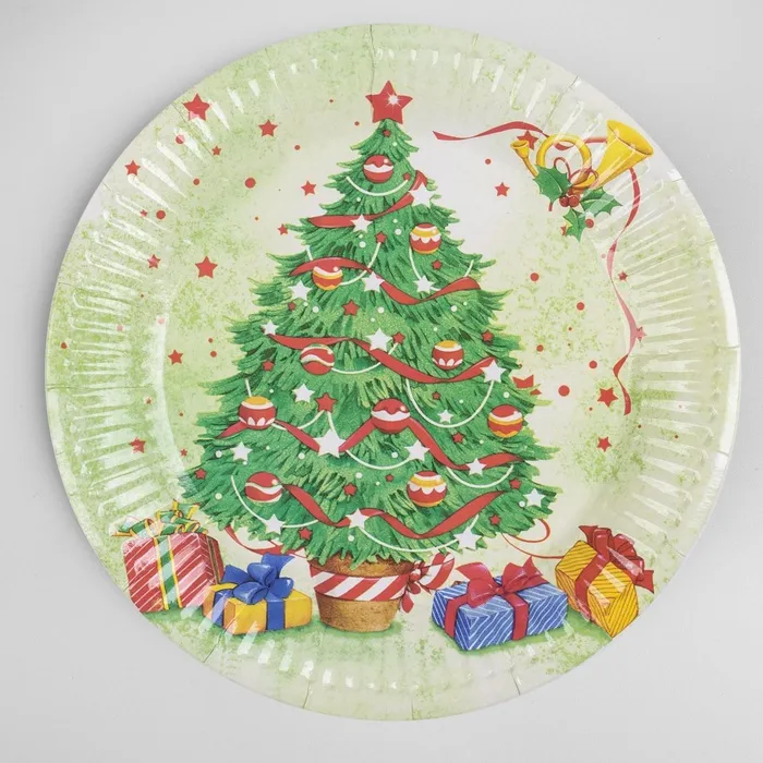 Тарелка новогодняя бумажная одноразовая «Ёлочка», 6 шт. — Характеристики