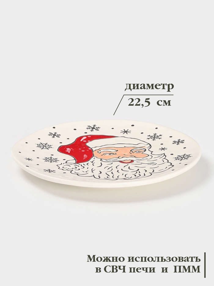 Тарелка новогодняя Доляна «Дед Мороз», d=22.5 см, керамика, белая — Характеристики