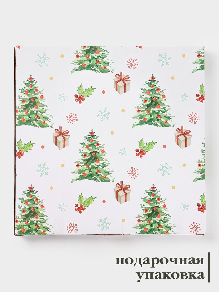 • Белый фон — подчёркивает контраст рисунка и сочетается с любой праздничной скатертью.