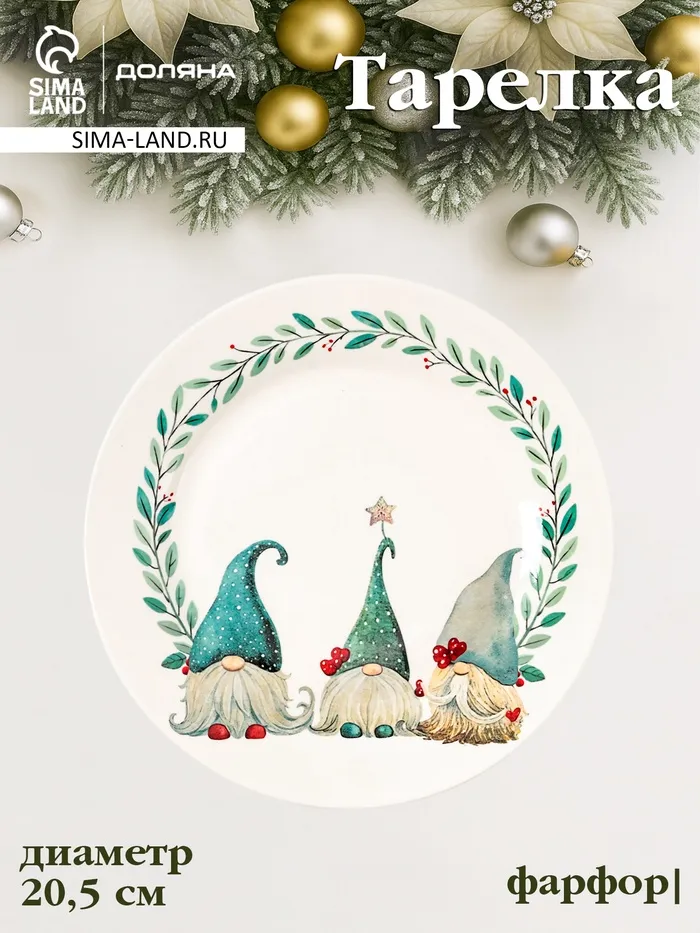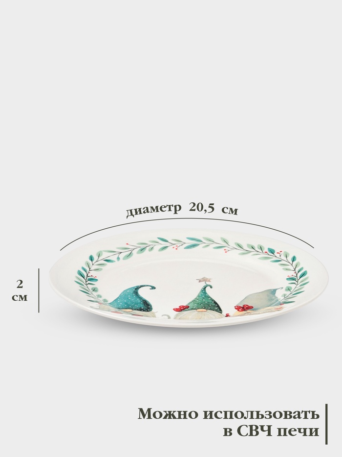 Тарелка новогодняя Доляна «Домашние гномики», d=20.5 см, фарфор, белая — Характеристики