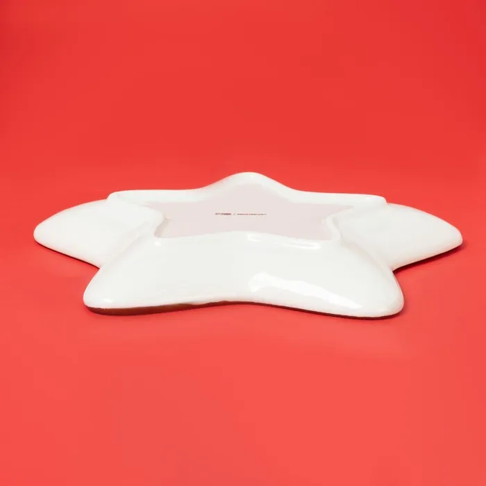 Создайте незабываемую атмосферу праздника с этой изящной тарелкой, которая станет ярким акцентом новогоднего стола. Ее уникальная форма звезды и нежный белый цвет прекрасно подойдут для подачи угощений на праздничный ужин.