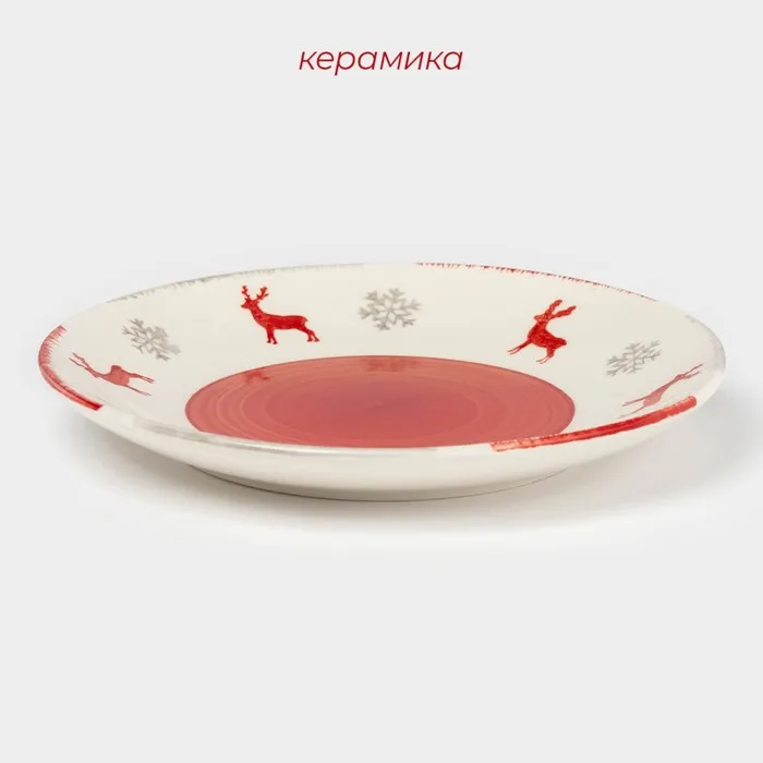Тарелка новогодняя Доляна «Легенда Севера», d=19 см, цвет бежевый — Характеристики