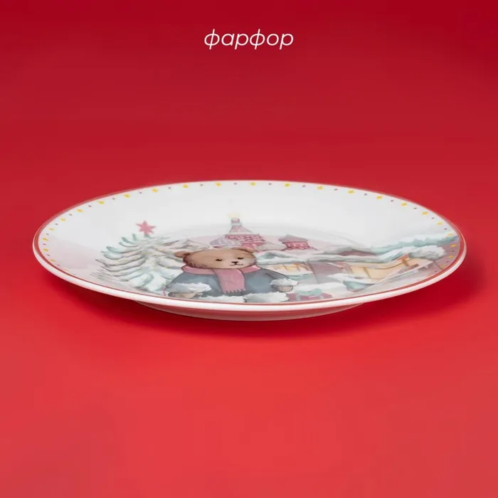 Тарелка новогодняя Доляна «Московский мишка», d=20,5 см, фарфор, цвет белый — Характеристики
