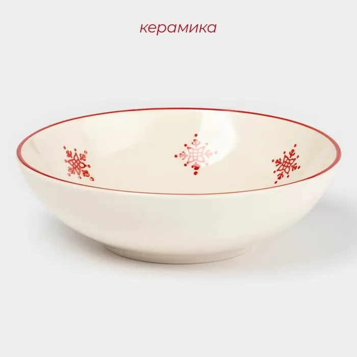 Тарелка новогодняя Доляна «Нордик», 750 мл, d=18,5 см, глубокая, керамика, бежевая — Характеристики