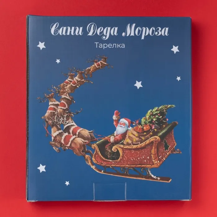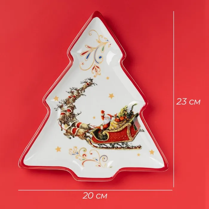 Тарелка новогодняя Доляна «Сани Деда Мороза», керамика, 23×20×2,2 см, цвет белый — Характеристики
