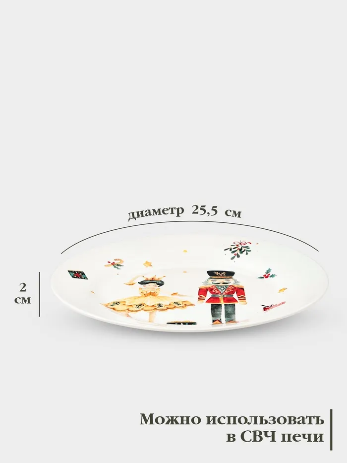 Тарелка новогодняя Доляна «Сказочный бал.Щелкунчик», d=25.5 см, фарфор, белая — Характеристики