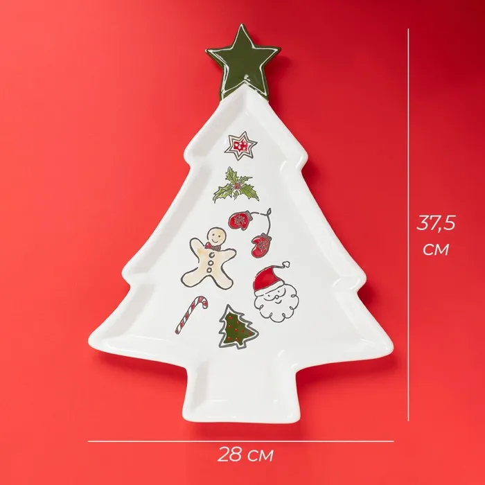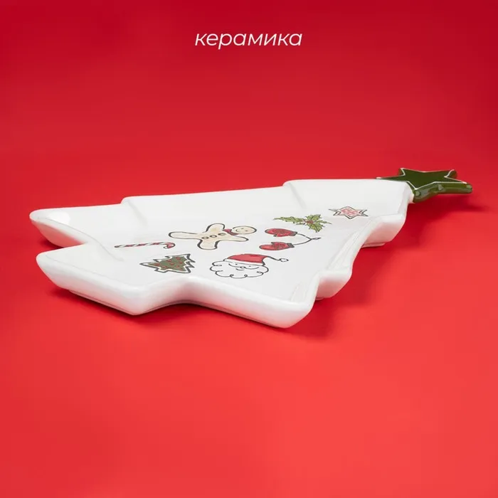 Тарелка новогодняя Доляна Sweey Treats, 37,5×28×2,5 см, керамика, белая — Характеристики