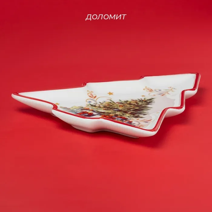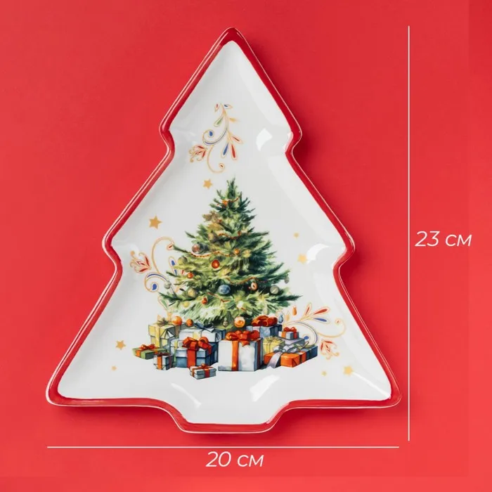 Тарелка новогодняя Доляна «Волшебное дерево», керамика, 23×20×2,2 см, цвет белый — Характеристики