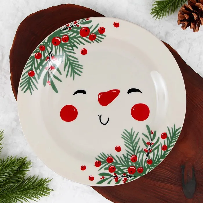 Тарелка новогодняя керамическая «Снеговик Зимка», 20 см — Характеристики