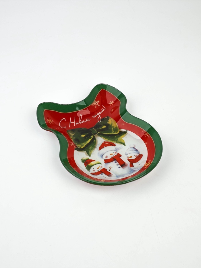 Новогодняя стеклянная тарелка в форме банта размером 13,5 x 18 см — это стильное и функциональное украшение для вашего праздничного стола.