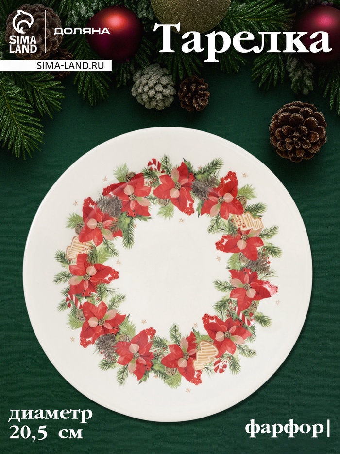 Тарелка новогодняя плоская «Волшебных моментов», 19.5×16.5 см — Характеристики