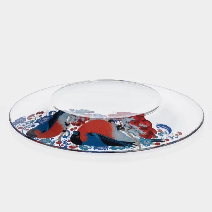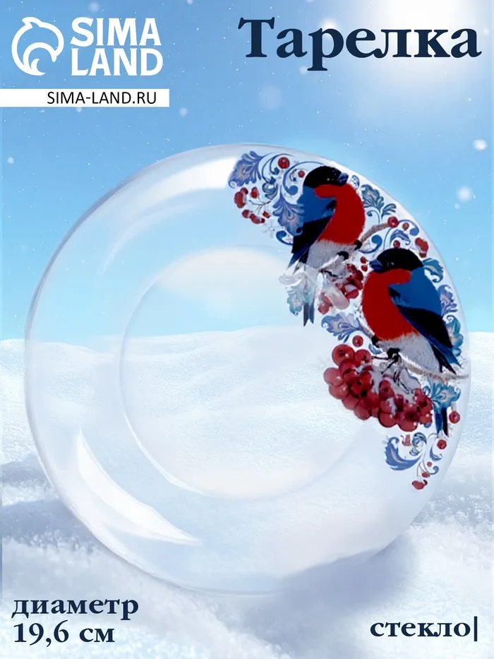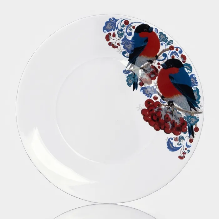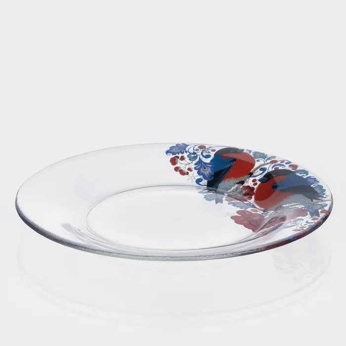 Тарелка новогодняя сервировочная «Снегири на рябине», d=19.6 см, стекло — Характеристики