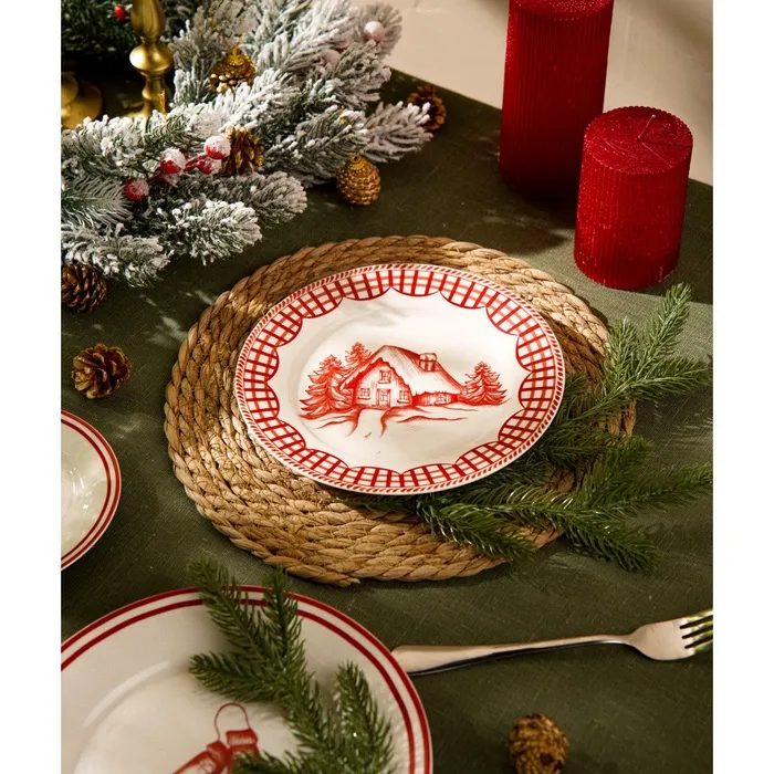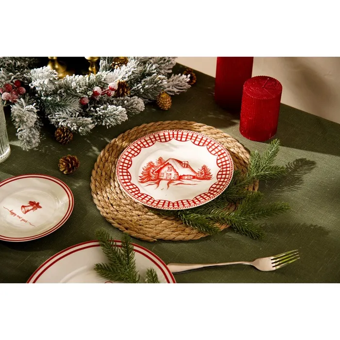 Изготовленная из качественного фарфора, эта тарелка отличается гладкой поверхностью и белым цветом, что позволяет легко комбинировать её с другими предметами сервировки. Яркий новогодний рисунок создает праздничное настроение и станет отличным акцентом на любом столе.