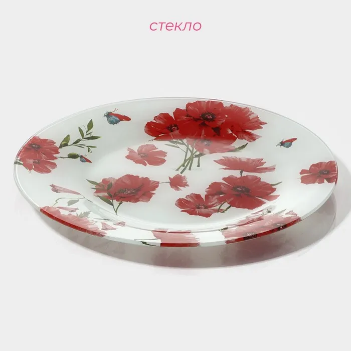 Тарелка обеденная Доляна «Красные маки», d=23 см, стекло — Характеристики