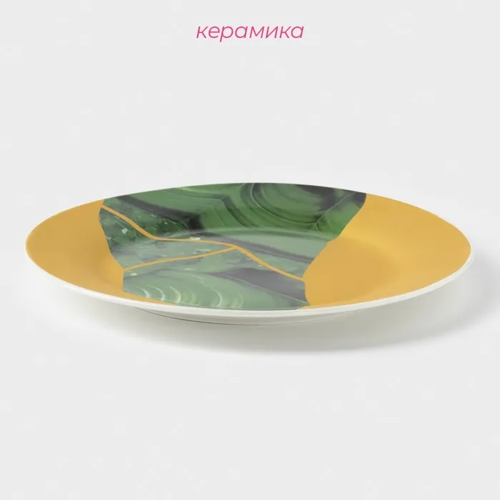 Тарелка обеденная Доляна «Малахитовая шкатулка», d=25 см, фарфор, зелёная — Характеристики