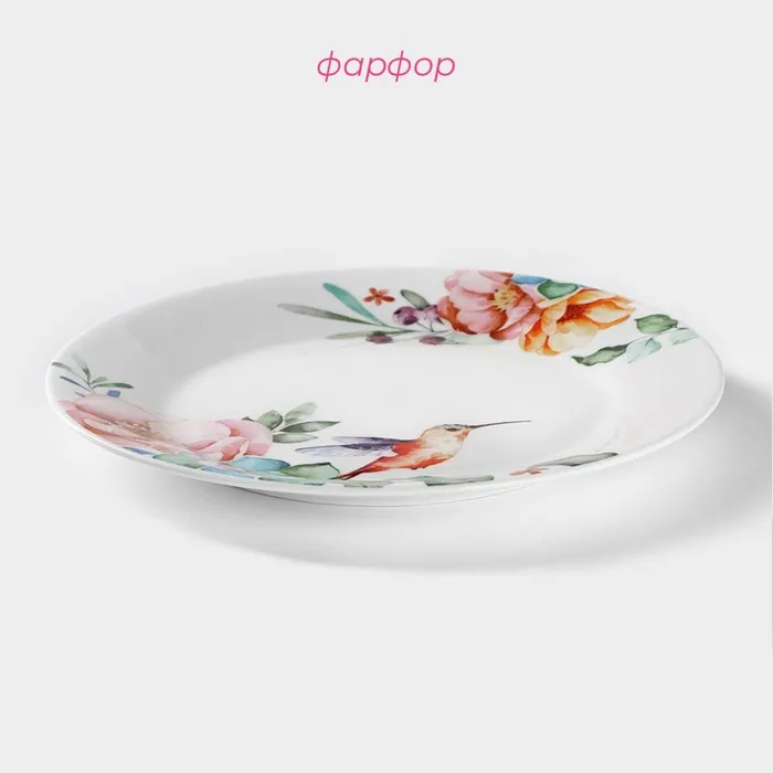 Тарелка обеденная Доляна «Пташка», d=25.3 см, фарфор, белая — Характеристики