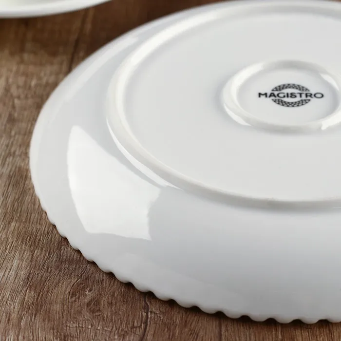 Стильная посуда Magistro «Лакомка» подарит вашей кухне особенный вид! Фигурная окантовка придаёт классическим белым изделиям эффектность. Посуда подходит для ежедневной и праздничной сервировки.