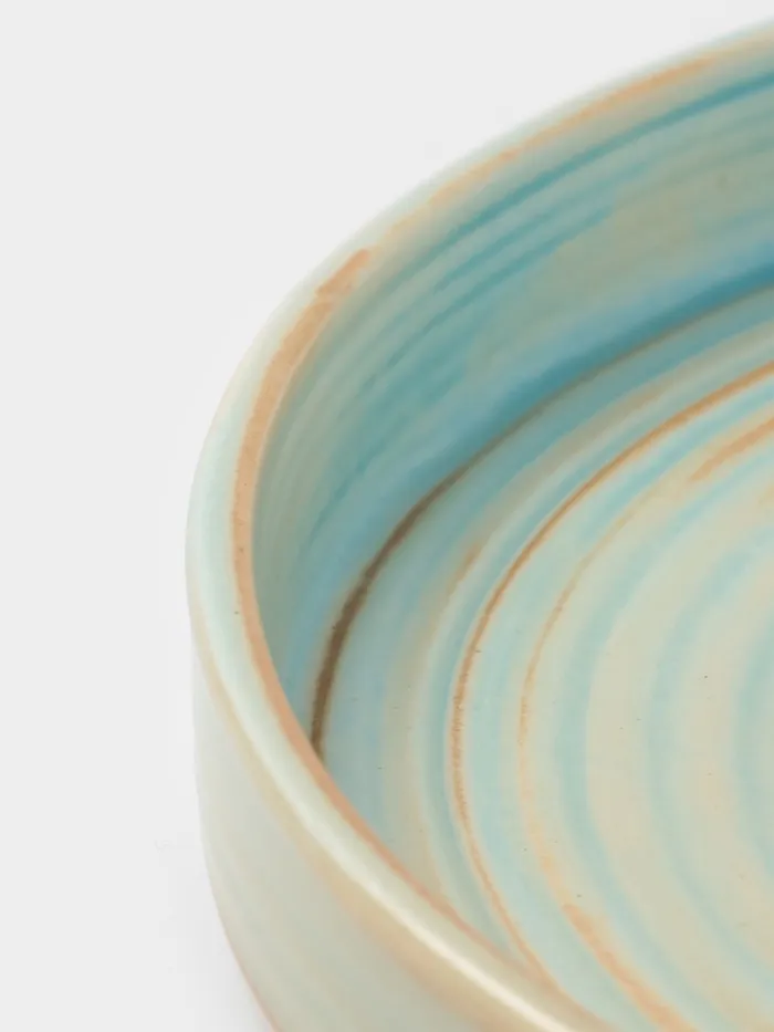- Уникальный дизайн с градиентом и полосками создает эффект морских волн и придает тарелке особый шарм.