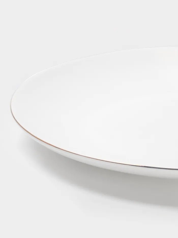 Лаконичность и изящность форм сочетаются в особой коллекции классической посуды «Золотая линия». Белоснежная посуда в минималистическом стиле имеет отличительную особенность – каждое изделие имеет золотую окантовку.