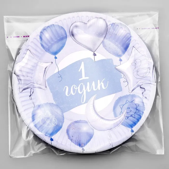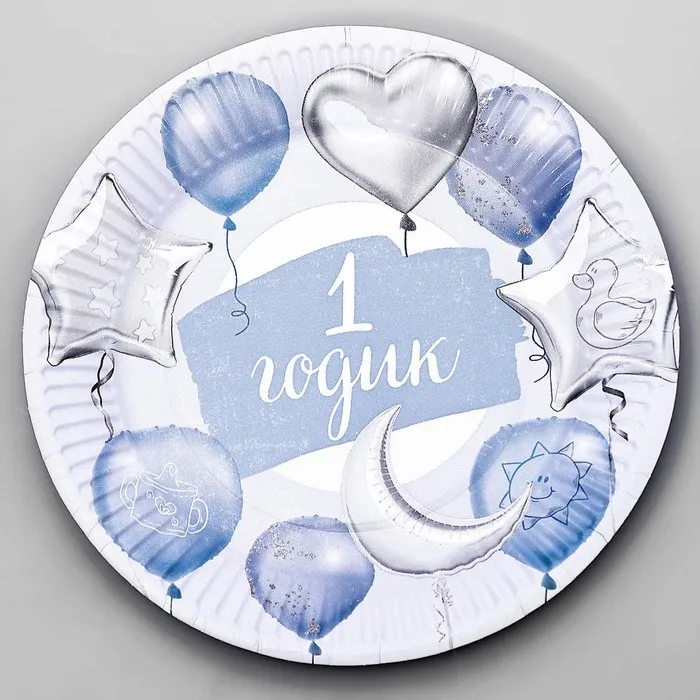 Тарелка одноразовая бумажная «1 Годик, мальчик», 18 см, голубая — Характеристики