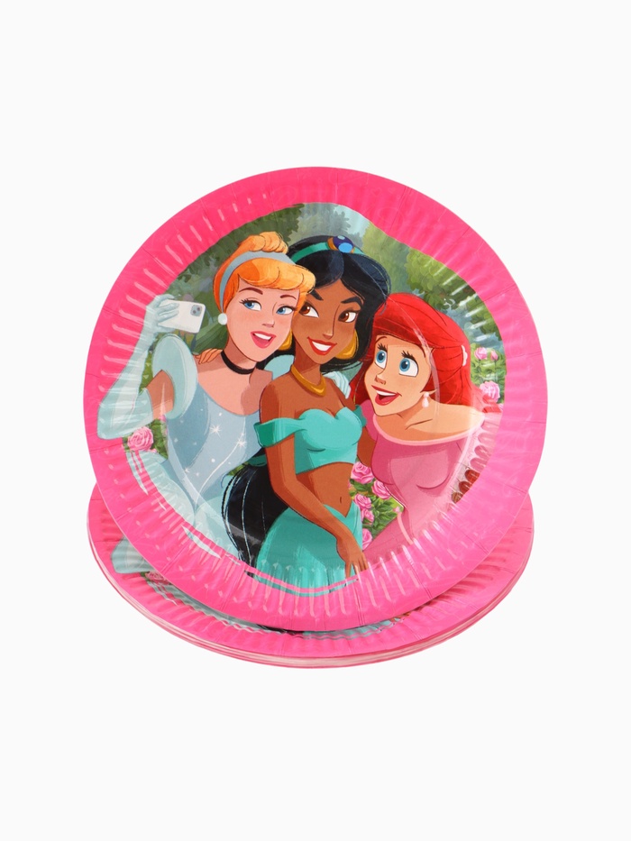 Одноразовые тарелки «Принцессы» — 10 штук, диаметром 18 см — сказочный и элегантный акцент для самого волшебного праздника! На каждой тарелке — любимые диснеевские принцессы: Ариэль, Золушка и Жасмин. Изготовлены из плотного, безопасного картона. Идеальны для дня рождения, утренника или тематической вечеринки. Пусть каждый укус будет наполнен мечтами, добротой и магией диснеевских принцесс!