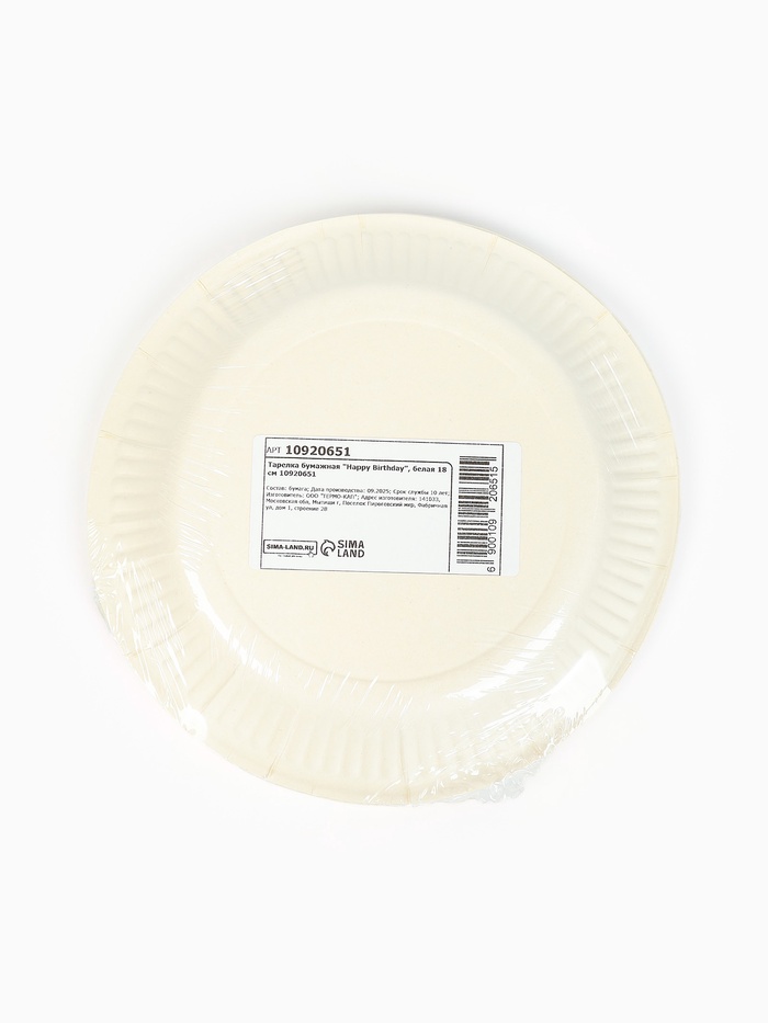 Тарелка одноразовая бумажная «Happy Birthday», белая, 18 см — Характеристики