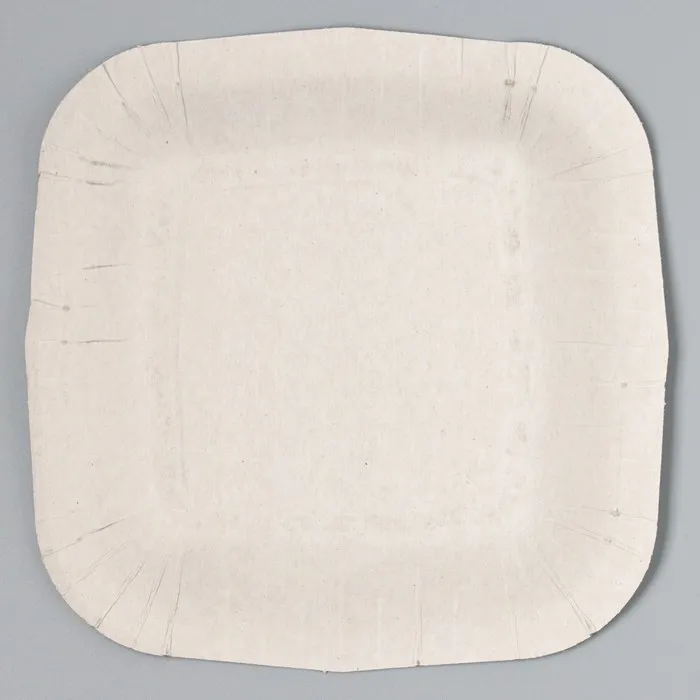 Тарелка сделана из плотного картона, что гарантирует её прочность и устойчивость к влаге.