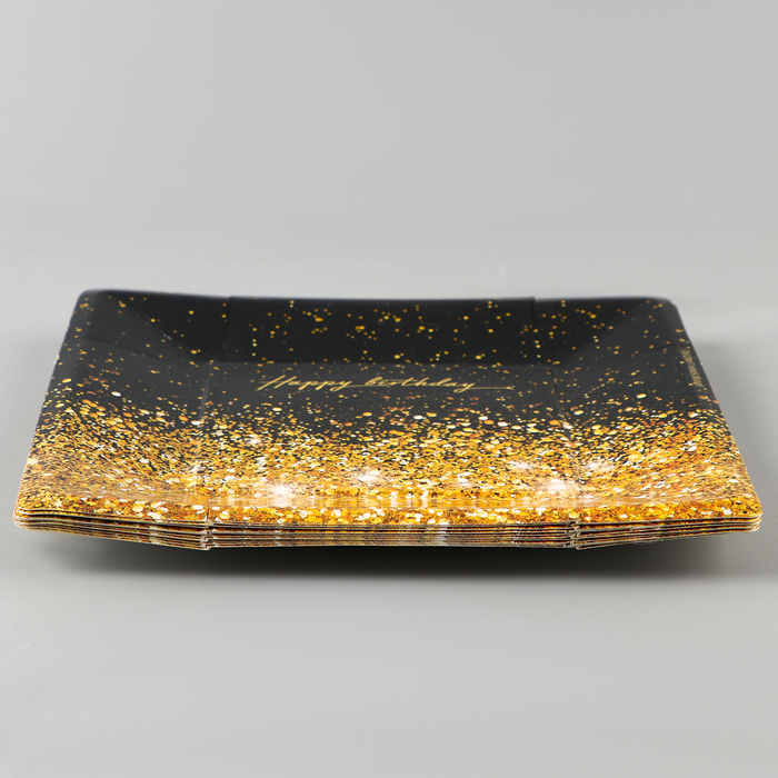 Тарелка одноразовая бумажная квадратная Happy Birthday, 21 см