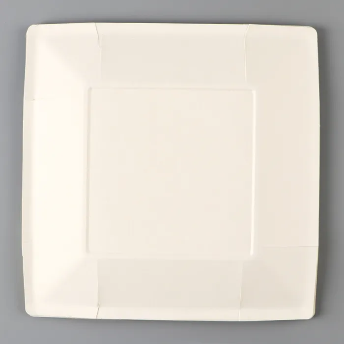 Тарелка сделана из плотного картона, что гарантирует её прочность и устойчивость к влаге.