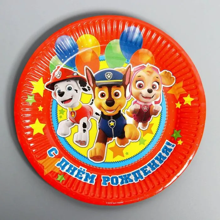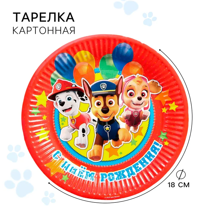 Тарелка одноразовая бумажная "С Днем Рождения!", 18 см, Щенячий патруль — Характеристики