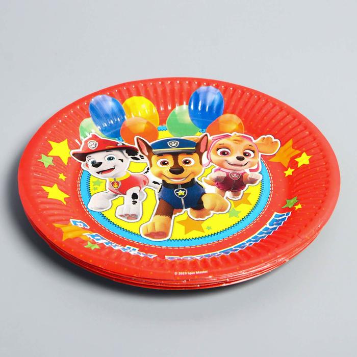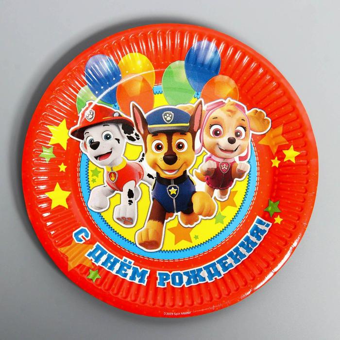 Тарелка одноразовая бумажная "С Днем Рождения!", 18 см, Щенячий патруль