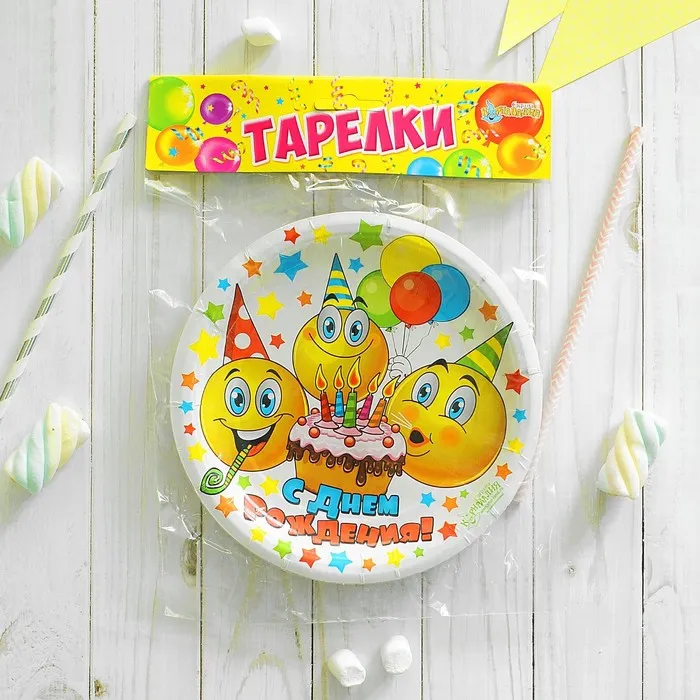 Тарелка одноразовая бумажная «С днем рождения», набор 6 шт., 18 см — Характеристики