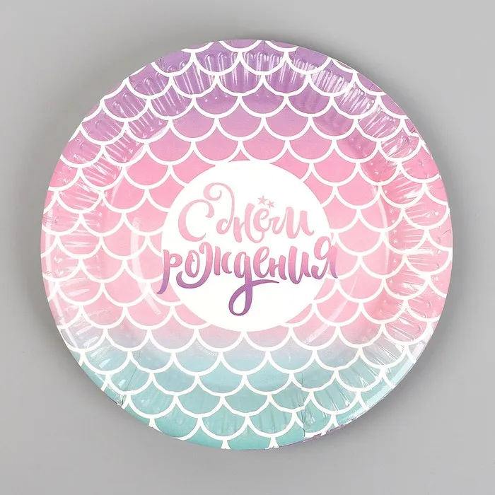 Тарелка одноразовая бумажная "С днем рождения", русалка, 18 см — Характеристики