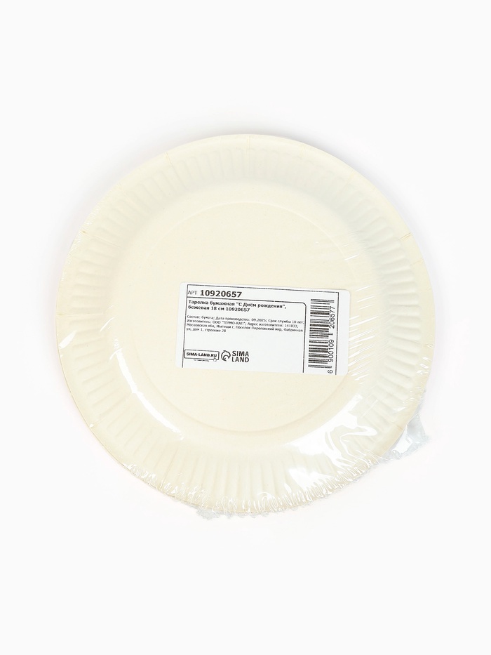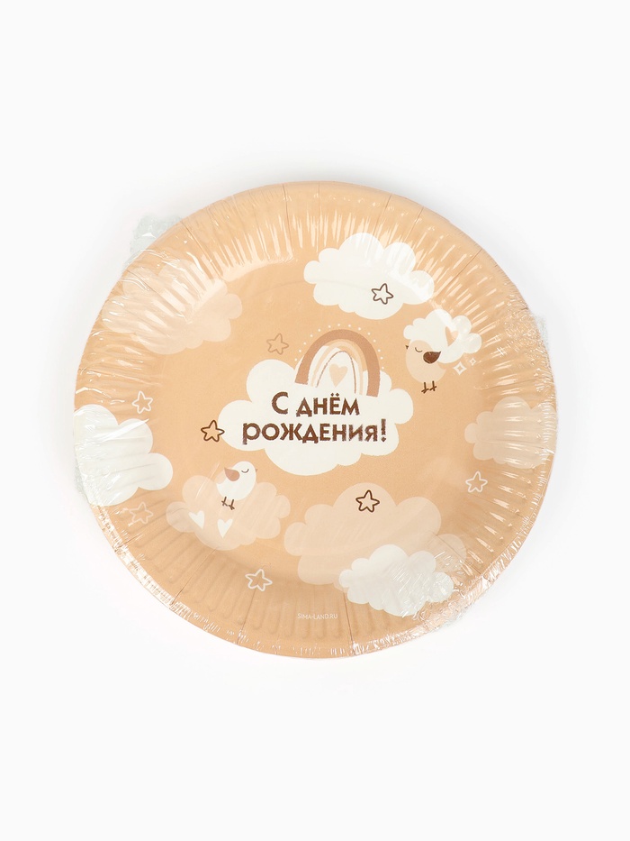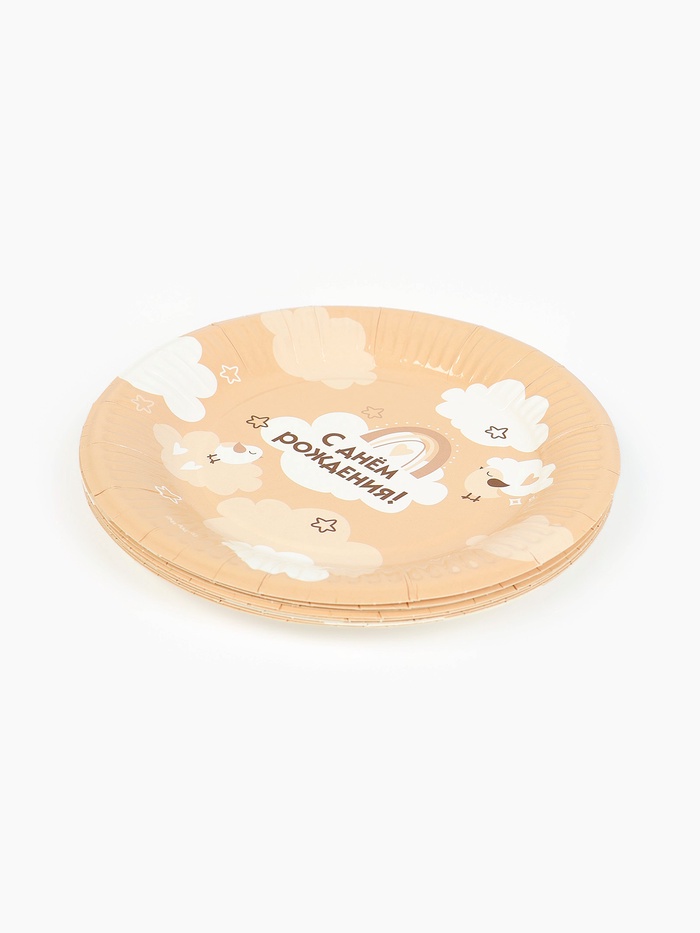 Тарелка одноразовая бумажная «С Днём рождения», бежевая, 18 см — Характеристики