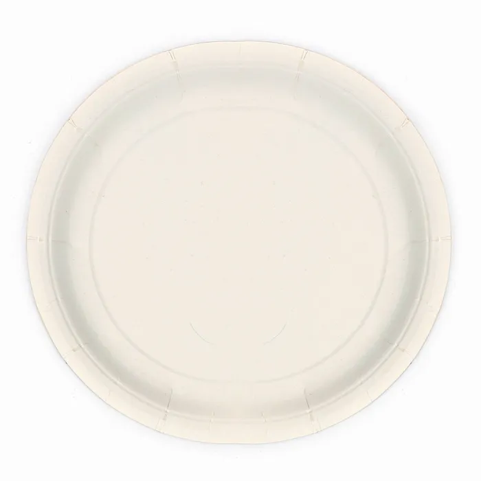Тарелка сделана из плотного картона, что гарантирует её прочность и устойчивость к влаге.