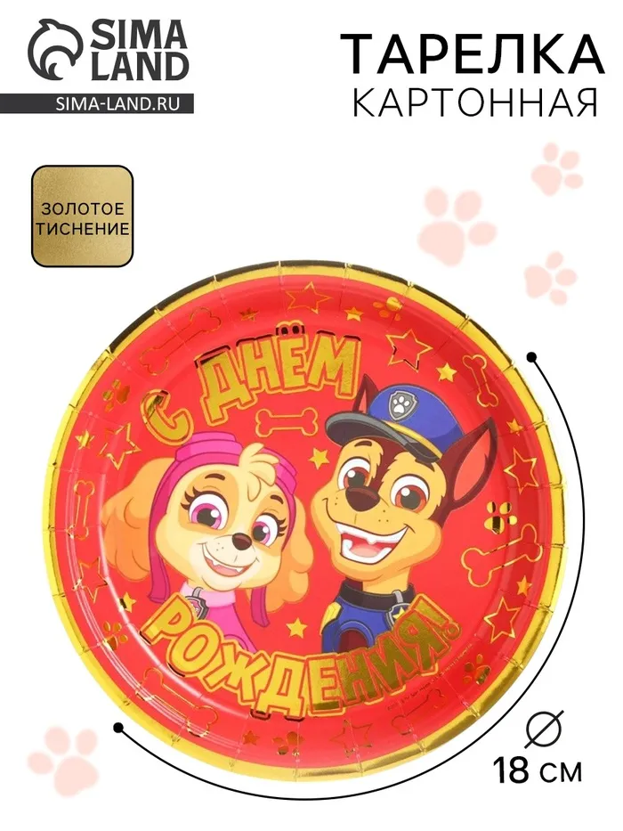 Тарелка одноразовая бумажная с тиснением «С Днем Рождения!», 18 см, Щенячий патруль — Характеристики