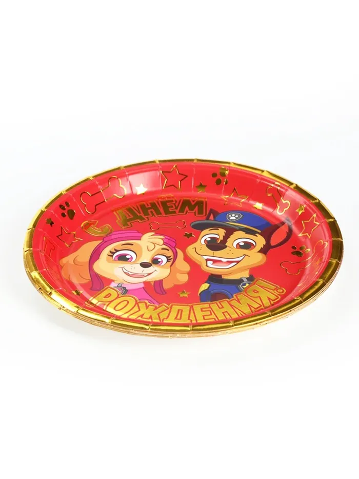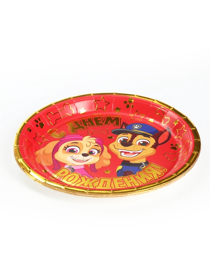 Тарелка одноразовая бумажная с тиснением «С Днем Рождения!», 18 см, Щенячий патруль