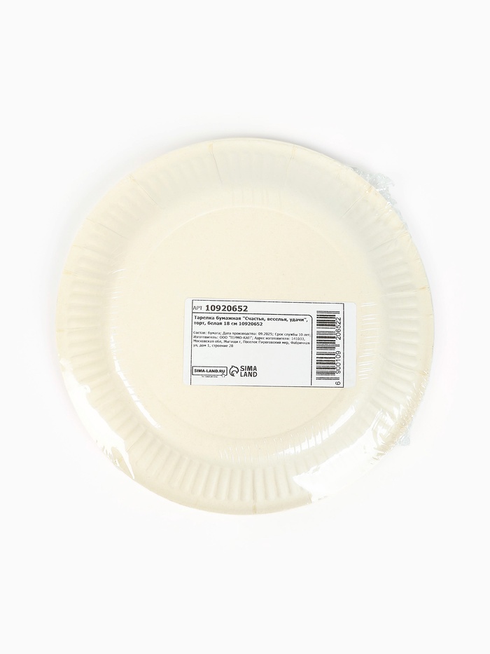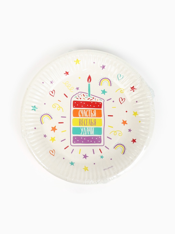 Тарелка одноразовая бумажная «Счастья, веселья, удачи», белая, 18 см — Характеристики