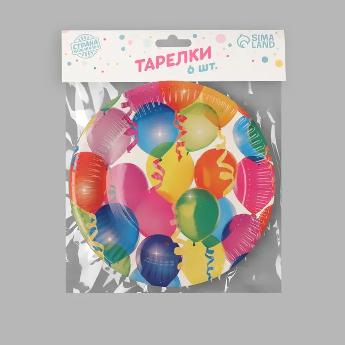 Тарелка одноразовая бумажная «Воздушные шарики», набор 6 шт., 18 см — Характеристики