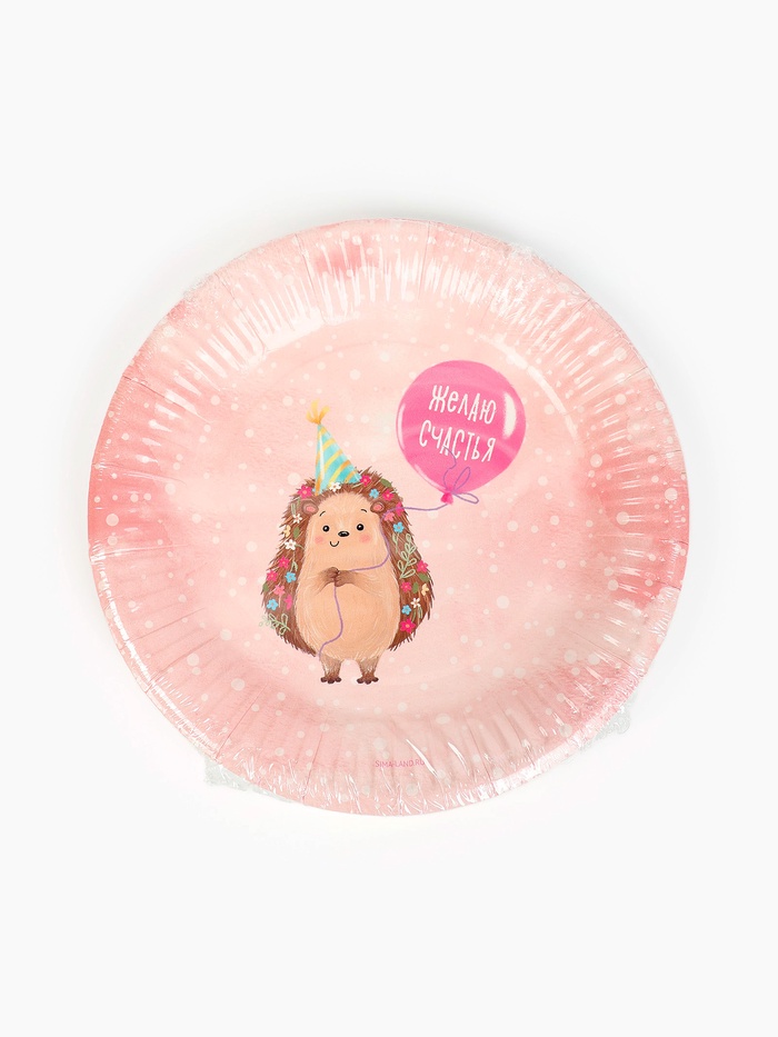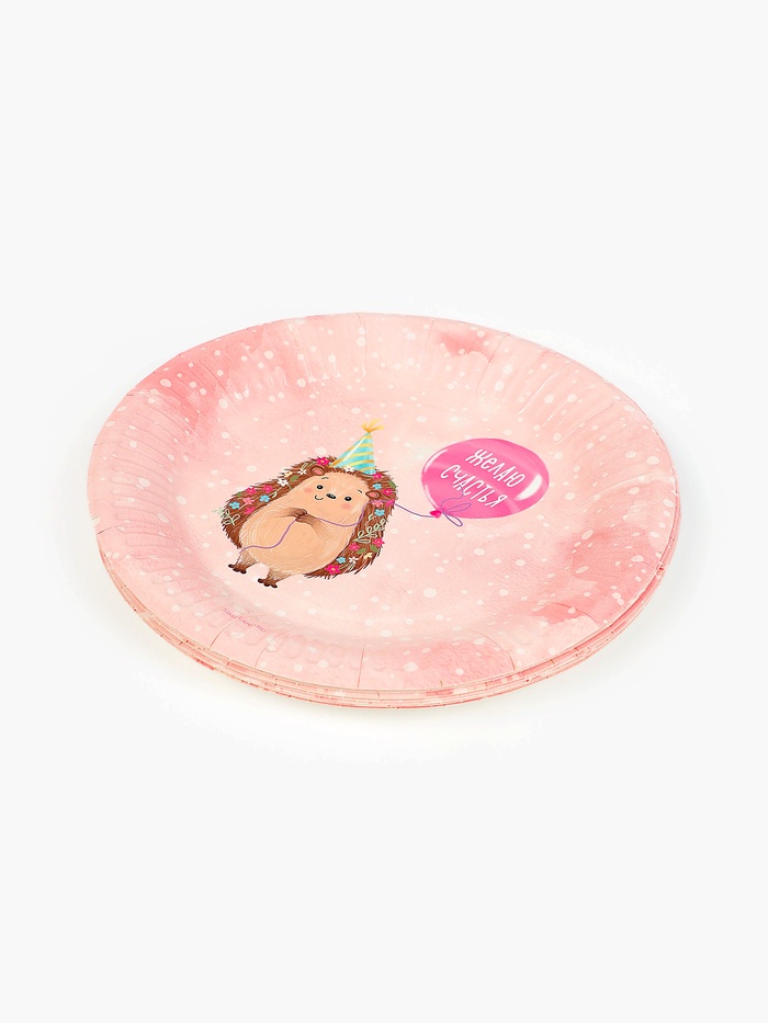 Тарелка одноразовая бумажная «Желаю счастья, ёжик», розовая, 18 см — Характеристики
